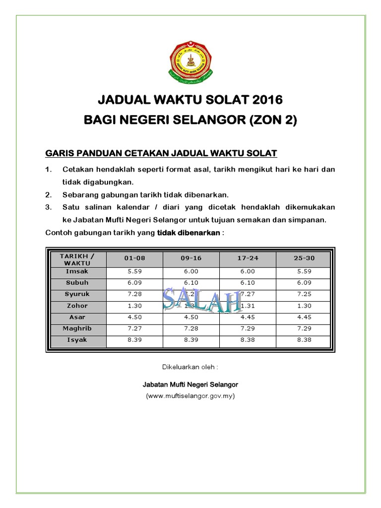 Waktu Solat Selangor 2016 Zon2 30okt2015 Pdf